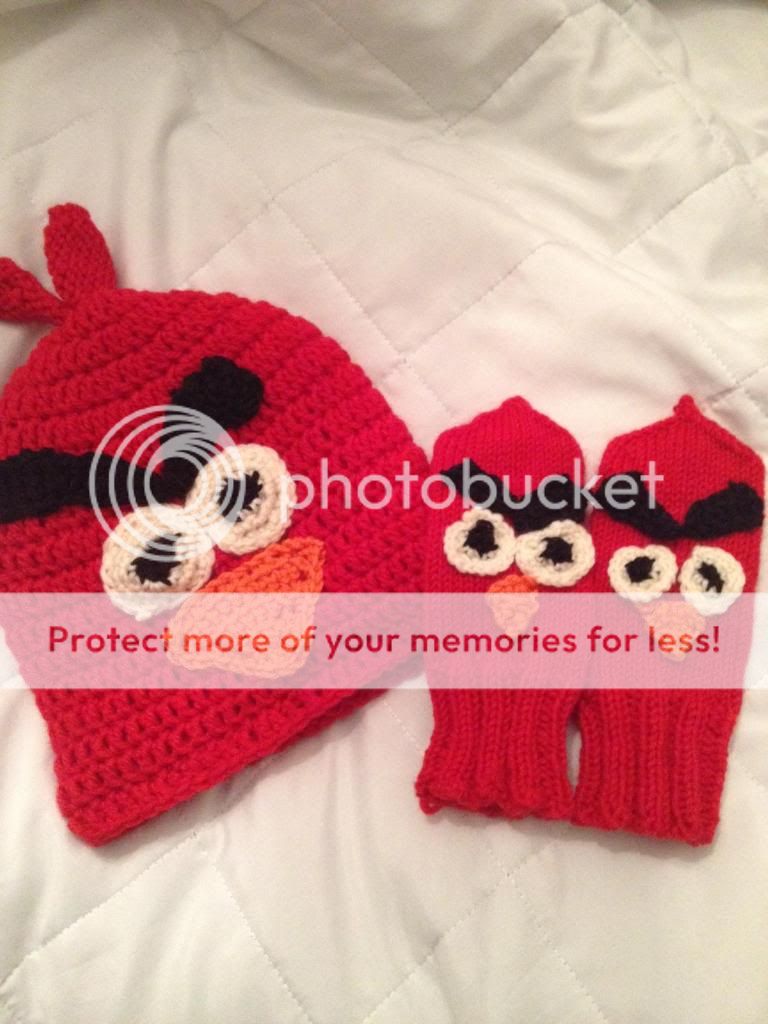 Tällaiset Angry Birdsiä muistuttavat pipa ja tumput lähtivät viikko sitten pohjoisiin ilahduttamaan 4-vuotiasta synttärisankaria.